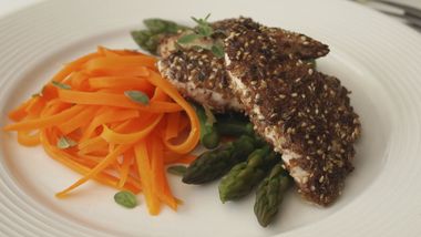 Junto con los espárragos agrega unas tiritas de pimientos asados para darle más color al plato.