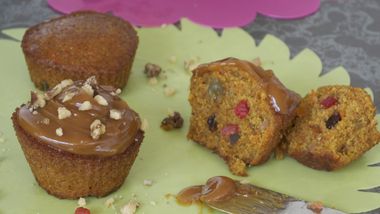 Precalienta el horno a 375 °F. Utiliza aerosol antiadherente para cubrir toda una bandeja de hornear muffins.