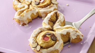 Te presento un fácil y sencillo pan dulce de canela para celebrar el día de pascua, que está listo en ¡menos de 30 minutos! Para prepararlo, usa la masa Pillsbury™ para que la receta sea ¡rápida y fácil!