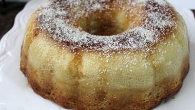 Hornea de 60 a 70 minutos, o hasta que al insertar un palillo en el pastel de chocolate, éste salga limpio (el relleno blanco se puede pegar). Enfría en el molde sobre una rejilla por 15 minutos. Saca el pastel del molde y colócalo en una rejilla. Enfríalo por completo, aproximadamente 2 horas.