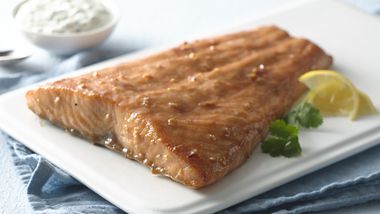 De pequeña, cada vez que íbamos al restaurante de comida rápida a comer nuggets de pollo, siempre pedía una buena cantidad de salsa miel mostaza. Me gustan mucho los sabores agridulces y el que tiene este aderezo es irresistible. También solía consumirla en las fiestas infantiles cuando nos servían las famosas “colombinas” de pollo, unos muslos pequeños bien doraditos que iban a la perfección con esta salsa. Esta vez te la presento acompañando unos jugosos filetes de salmón, plato que puedes servir junto a las verduras que más te gusten y un poquito de arroz. ¡Esta receta es ideal para que todos admiren tus dotes culinarias!