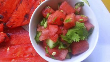 Salsa Picante de Sandía & Jícama con Tostadas a la Parrilla