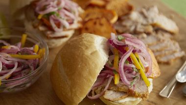 Mi primer contacto con los griegos y la comida griega se produjo cuando fui a la universidad en Inglaterra. Conocí muchos chipriotas que sabían dónde encontrar la mejor comida griega de la ciudad y, como el tema de la comida me obsesiona, acepté contenta acompañarlos siempre que podía. Una de esas veces, conocí un nuevo tipo de queso del cual me enamoré ni bien lo probé: el queso halloumi. Es difícil determinar qué es lo que más me gusta del queso halloumi. Tiene un sabor salado perfecto y la textura, bueno, ¿qué mejor que un queso asado que se reblandece, pero conserva su forma? Me recuerda al queso frito que mi madre hacía con tostones (plátanos fritos). Para mí, es la mejor forma de comer queso. A menudo como queso halloumi asado solo. ¿Por qué dejaríamos que otro ingrediente le opaque su sabor? Pero solo por diversión, creé un sándwich de queso asado tipo mediterráneo, con su famoso queso "para asar".