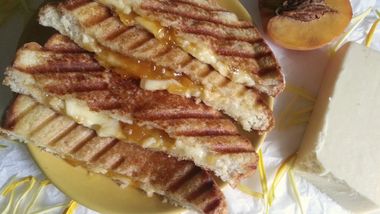 Coloca los sándwiches en un sartén, con el lado de la mantequilla hacia abajo. Unta la mantequilla sobrante encima de los sándwiches. Cocina, sin tapar, a fuego medio por aproximadamente 5 minutos o hasta que los lados de abajo se doren un poco. Voltéalos y cocínalos de 2 a 3 minutos más, o hasta que los lados de abajo se doren un poco y el queso se derrita.