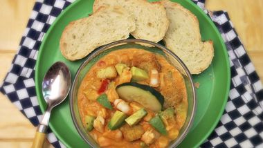 Sírvelo en platos de sopa, con un copo de yogurt natural.