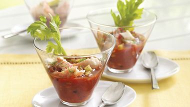 Antes de servir rellénalos con un poquito de gazpacho. Decora con hojas de perejil, croutons, y sirve bien fríos.