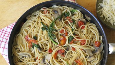 • Las semillas y aceite de ajonjolí le otorgan un delicioso sabor a nueces a esta receta de pasta y verduras.