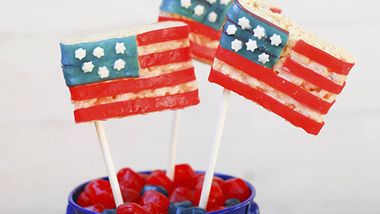El sombrero del tío Sam es un emblema que representa mucho en las celebraciones del 4 de Julio. Se pueden hacer con un par de malvaviscos y Fruit by the FootTM. ¡Se verán preciosos mientras más pongamos en un plato de servir!