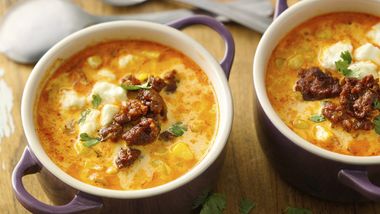 En vez de agua, cocina la sopa en caldo de carne o de vegetales.