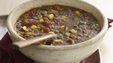 La espinaca de Green Giant® agrega un sabroso sabor a la sopa de lenteja hecha con caldo de pollo Progresso®, los jitomates (tomates) Muir Glen®--una sopa deliciosa para el lunch o la cena .