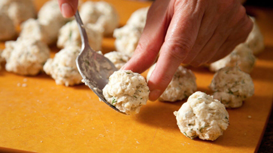 Mientas tanto, en un tazón mediano, mezcla Bisquick y la quínoa cocida. Mezcla la leche y el eneldo fresco hasta que se humedezcan. Divide la mezcla en 18 partes iguales, incorpora la mezcla a la sopa hirviendo. Cocina sin tapar a fuego medio-bajo durante 10 minutos, a un punto de ebullición bajo. Tapa; cocina entre 15 y 20 minutos o hasta que los dumplings estén blandos.