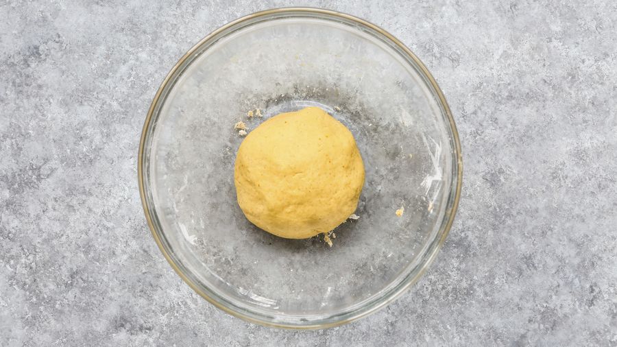 Espolvorea un poco de harina de trigo para todo uso sobre una superficie plana y amasa con las manos la masa hasta que esté homogénea, suave y elástica. La masa no debe estar pegajosa. Deja la masa reposar por 15 - 20 minutos.