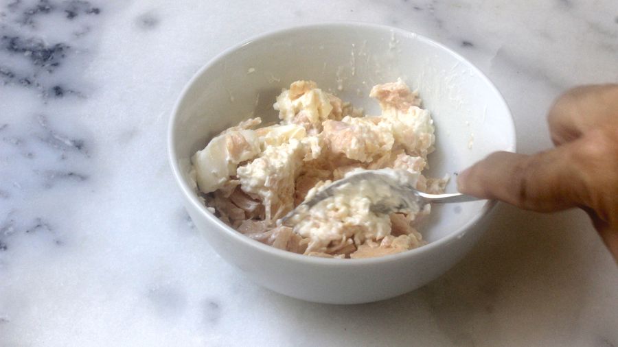• 1 (5 oz) de pechuga de pavo enlatada, escurrido