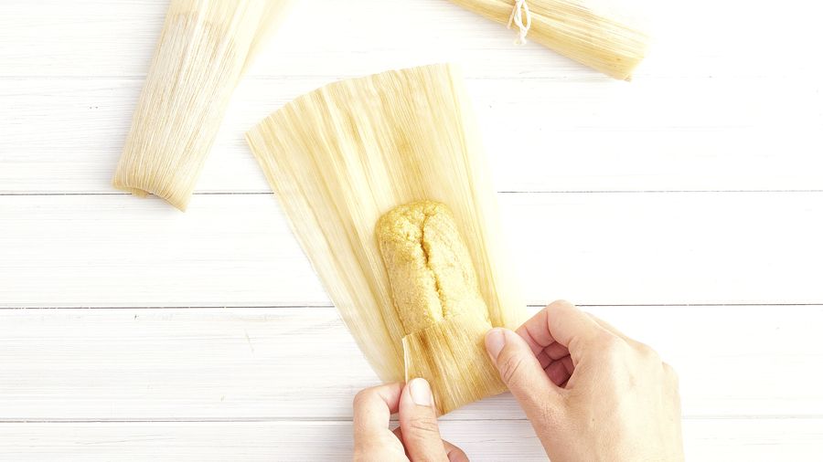 8Ata el tamal por la parte superior con cordón de cocinar de unas 13 pulgadas.