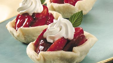 Precalienta el horno a 350°F. Rocía todas las copas de una charola para hornear cupcakes con aceite en aerosol. Abre el tubo de masa y extiende la masa con un rodillo ligeramente para pegar los triángulos de masa. Corta la masa en 12 cuadros. Acomoda cada cuadrito de masa en una de las copas de la charola, aplanando y extendiendo con las manos hasta cubrir toda la copa. Pica la masa varias veces con un tenedor para evitar que se infle mientras se hornea.