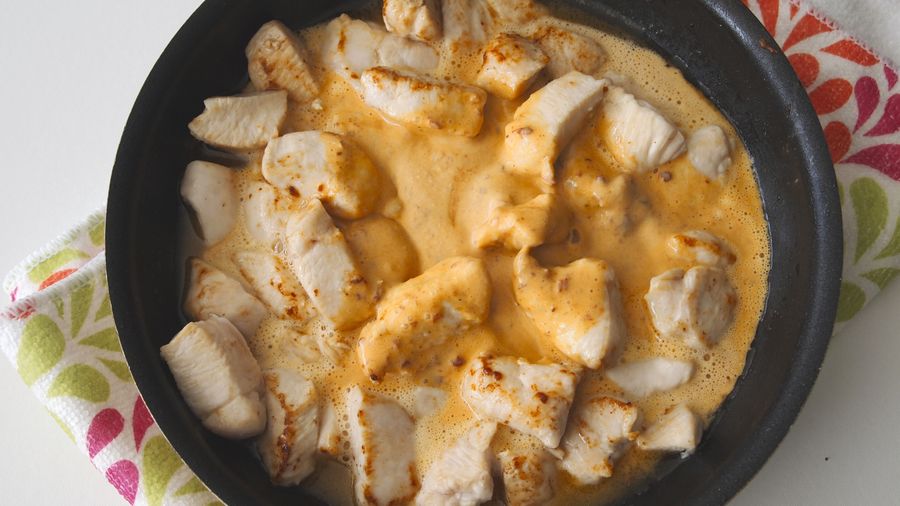 Derrite la mantequilla en una sartén a fuego medio. Agrega el pollo y dora por todos lados.