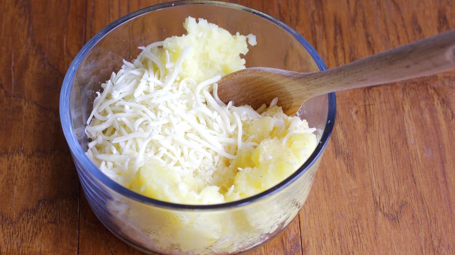 Escúrrelas, prénsalas e incorpóreles el huevo batido, sal, pimienta y queso mozzarella.