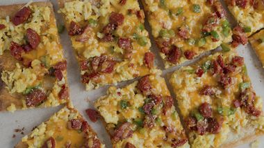 Tápalo herméticamente; refrigera de 2 a 24 horas. Precalienta el horno a 350°F. Destapa; hornea de 45 a 55 minutos o hasta que la superficie esté dorada. Si deseas, antes de servir adorna la tortilla con más albahaca fresca picada.
