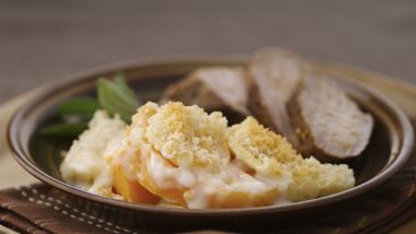 Para la butternut squash asada: Precalienta el horno a 425 °F. En una bandeja de hornear, mezcla la calabaza con 4 cucharadas de aceite de oliva y salvia, salpimiéntala. Asa por 20 minutos, hasta que esté suave y ligeramente dorada, voltéala a mitad del tiempo. Retira del horno. Baja la temperatura a 400 °F.