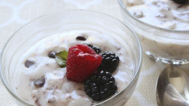 Para servir, decora las tortillas con el yogur y las frutas picadas y cubre con el resto del chocolate derretido. Decora con los pedacitos de coco rallado.