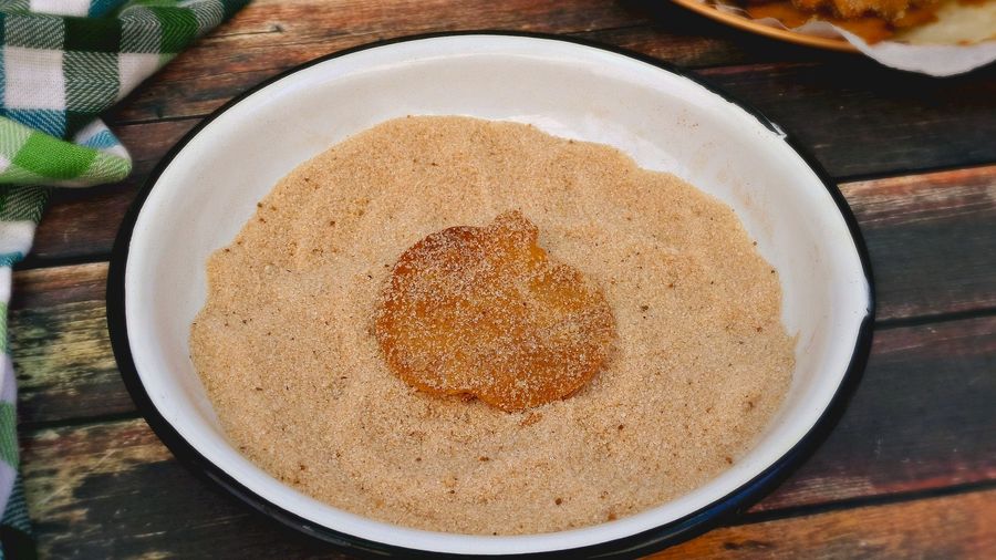 Espolvorea los totopos con la mezcla de azúcar y canela, asegurándose de que estén completamente cubiertos por ambos lados.