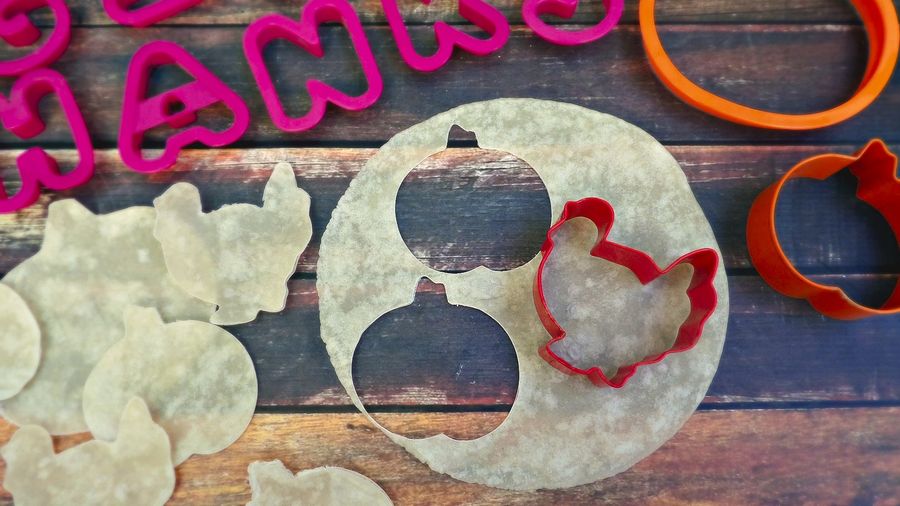 Con cortadores para galletas de 3 pulgadas, corta figuras en las tortillas de harina.