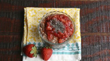 5Coloca cada fresa decorada en un plato de servir o tazas individuales que contengan Berry Cheerios triturados.