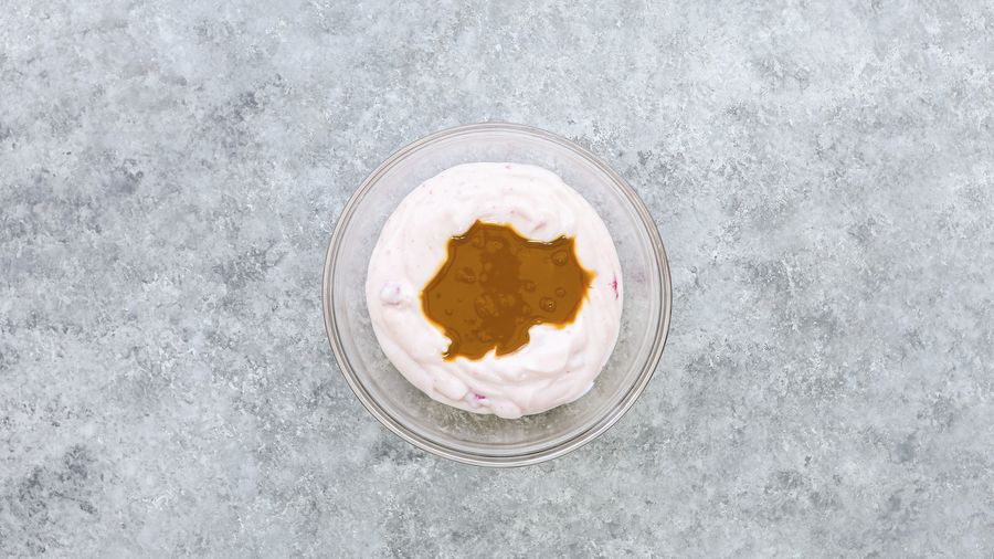 1En una licuadora, licua el yogurt y el dulce de leche juntos. Reserva en la nevera.