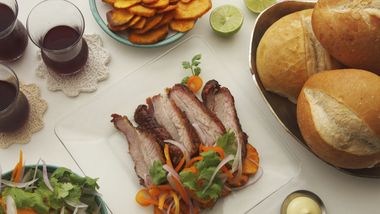 Mientras tanto, prepara la ensalada. Corta el repollo en tiras muy finitas y ponlo en un tazón. Agrega el tomate cortado en cubos y la cebolla. Sazona la ensalada con sal, aceite y vinagre. Reserva.