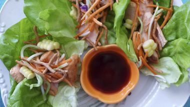 • 12 hojas de lechuga americana (iceberg), lavadas y secas