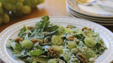 Mezcla el atún con las uvas, jícama, apio verde, cebolla, aceitunas. Coloca una buena porción de relleno sobre la lechuga.