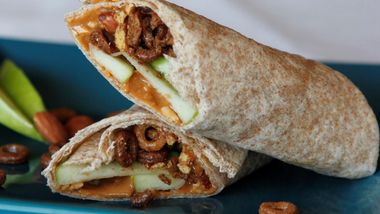 • Estos wraps son un maravilloso tentempié de crema de cacahuate y el mejor acompañante para una noche de películas. La crema de cacahuate combinada con zanahorias, apio y pasas dan un resultado a la vez dulce y salado. Deja que los niños te ayuden a preparar estos divertidos wraps mientras acomodas las almohadas y sirves las palomitas de maíz. Tus noches de películas serán aún mejores con esta sencilla receta casera.