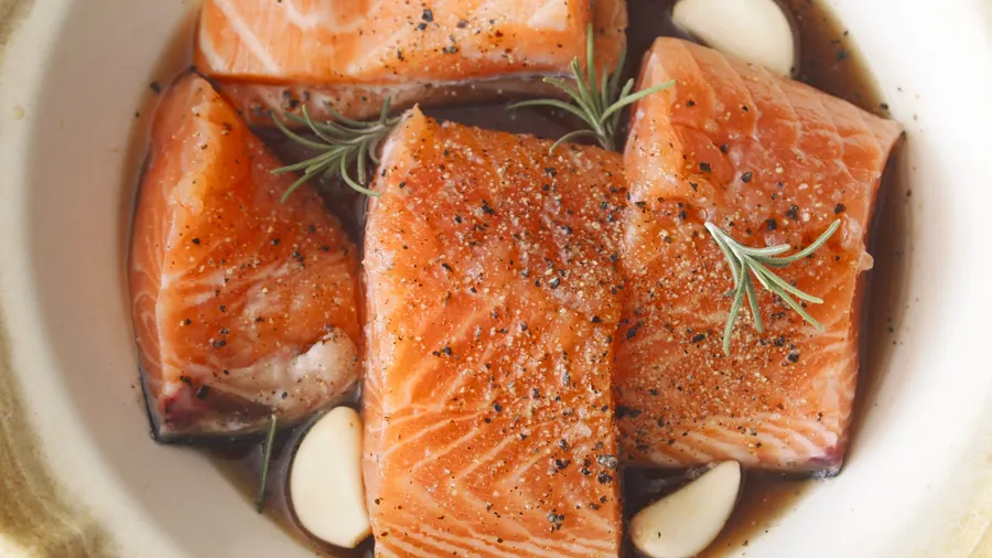Clean the salmon fillets, put them in a bowl and season with salt and pepper.