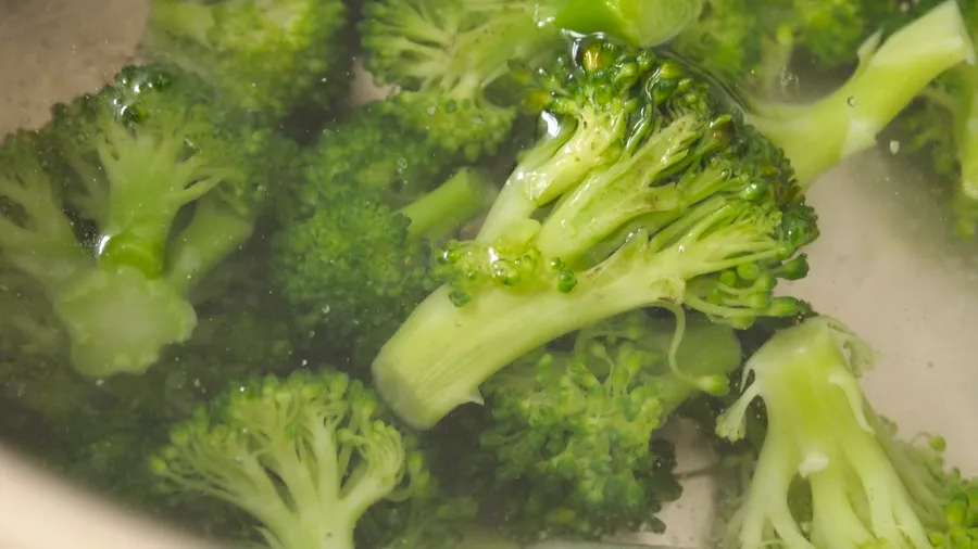 Remove from the pan and serve with broccoli, corn, and tomato.