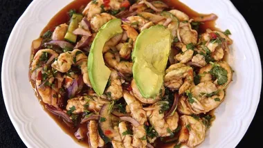 Aguachile is one of the most delicious seafood dishes I’ve ever tasted. Because it doesn’t require stove cooking, it’s as easy as making a salad. Enjoy with tortilla chips or crackers as an appetizer or tasty lunch. You will love the tang and spice in every bite.