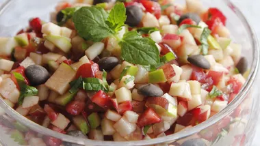Decorate with blackberries and mint leaf. Serve in small portions.