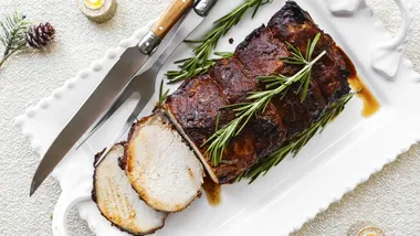 Nicole M. Presley There are many ways to prepare pork roast, but this simple preparation is one of my favorite methods and leaves you with a moist, tender piece of pork. I like to marinate the pork tenderloin in an orange juice and wine marinade overnight before braising and roasting it. The ancho chile rub is easy to prepare, and will give your roast the perfect finish. Once you and your guests are slicing this roast, you won’t believe how easy it was to prepare and how amazingly fancy it tastes.