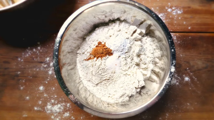 Mix the harina masa with baking powder, salt and ground cinnamon in a small bowl.
