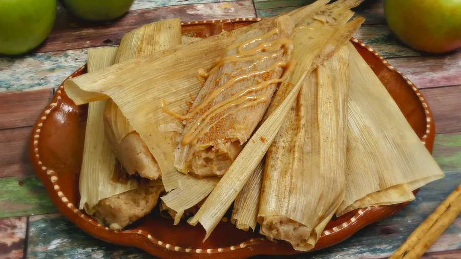 Make these apple tamales a bit creamier and slightly salty by stuffing each tamale with some cheddar cheese.