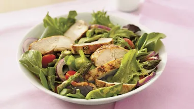 • Add sizzle to dinner salad with chicken hot off the grill and a peppy fruit salsa.
