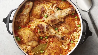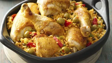• I’m amazed to see the similarities we find in one same recipe that we consider traditional or native to our own country. “Arroz con Pollo” (chicken and rice) is the perfect example of what I just mentioned, a dish that is consumed in every Latin American home. And even though its preparation and presentation varies in every country, we all use common basic ingredients to give it that authentic taste and personal touch. In my home, we usually prepare two delicious versions of arroz con pollo, the Puerto Rican one and this Argentinian recipe that I inherited from my beloved mother-in-law during one of my family trips.