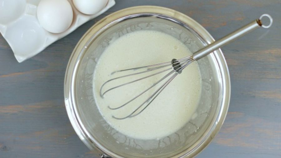 Mix the rest of the ingredients to make the panqueques, but remember to beat the eggs first and then add some milk and flour.