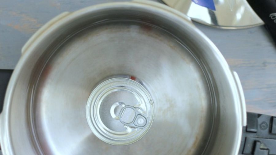Prepare the dulce de leche by putting the can of condensed milk in a water bath using a pressure cooker.