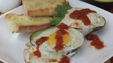 Place the avocado in an oven-safe dish. Try to not move it around too much. Bake for 15 minutes, remove from oven and top with chopped cilantro.
