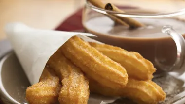 Place caramel topping and 3 tablespoons Cinnamon Sugar Butter Spread in small microwave-safe bowl. Microwave on HIGH (100% power), stirring every 30 seconds, until melted and smooth (1 to 2 minutes). Serve churros with dipping sauce.