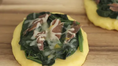 Mash the potatoes with a ricer or masher, add the creamed spinach, 2 tablespoons olive oil, and season with salt and pepper. If needed, add some of the saved cooking water until you get the creamy consistency you desire.