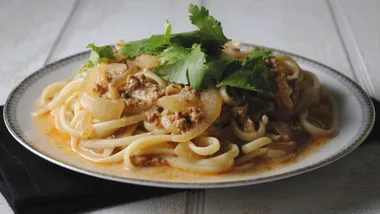 • This pasta dish is perfect to serve large crowds. Everyone will love it as tons of cheese is added and the spicy and flavorful notes of the chorizo make it unique and so tasty. With only three ingredients, you can make this dish in no time. It can be prepared ahead of time and baked right before serving.