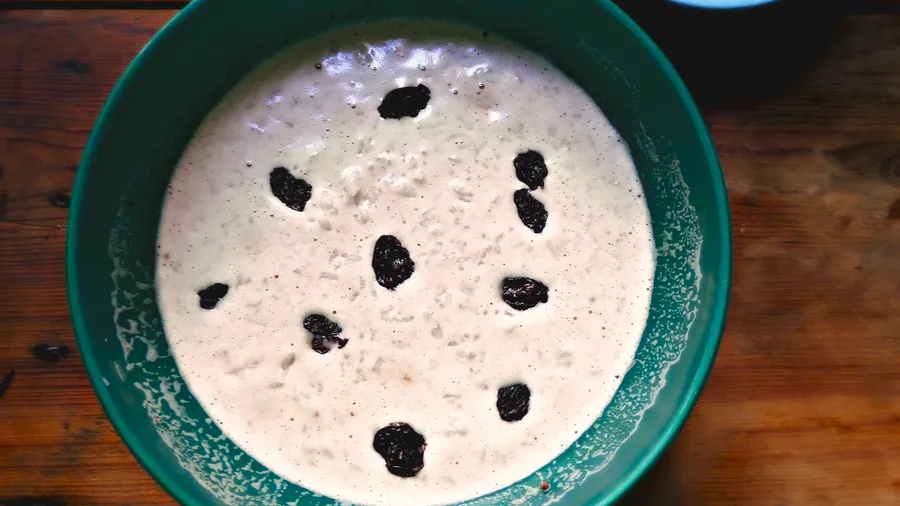 Add the milk, rice and raisins, stirring until all the ingredients are completely blended.