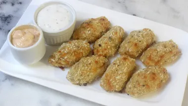Place the strips on a large baking sheet with space between each strip and cook for 12 minutes, turning each strip twice to cook evenly until golden brown.