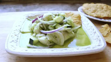 • Looking for a flavorful appetizer? Then check out this ceviche packed with bay scallops and fruits.